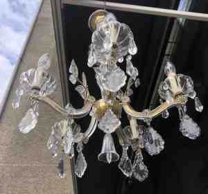 Kristallivalaisin 5-haarainen sähköistetty. Kauniit yksityiskohdat! Mitat: Halk.45 K.70