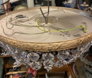 Kristalli-kattovalaisin, plafondimalli, 1900-luku, Turun Kristalli, 3 polttimopaikkaa Mitat: K.15 Halk.35