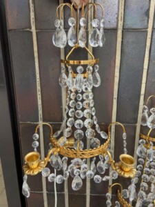 Seinälampetit 2 kpl kristallia, kullatut messinkirungot, Turun Kristalli 1970-luku, sähköistetyt Mitat: K.40 L.23