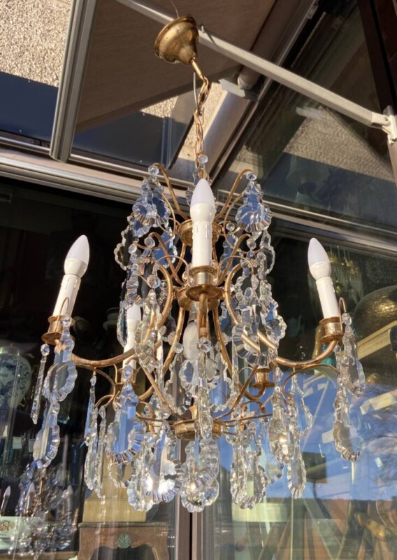 Turun Kristallin kattovalaisin, kullattu messinkirunko, 1970-luku, erikoisempi malli Mitat: K.100 Valaisimen mitat: 45 x 17 x 13