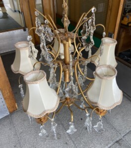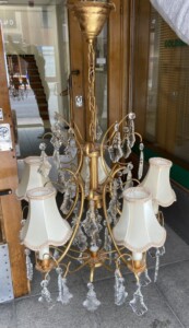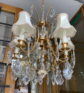 Kristallikruunu 5-haarainen, Turun Kristalli 1970-luku, kullattu messinkirunko Mitat: Myöh.