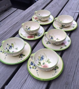 Kupit tasseineen 6 kpl, Kupittaan Savi Oy, käsinmaalatut