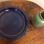 Kupittaan Savi Oy, pieni maljakko ja vati, käsinmaalatut Mitat: Maljakko K.9 Vati K.5 Halk.14