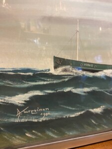 Hiekkalaiva Sora 1, akvarellimaalaus, sign. A.Turpeinen 1980 Mitat: 52 x 37