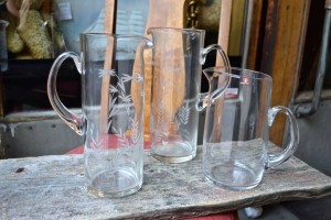 Hiottukoristeinen lasikaadin, toinen oikealta