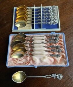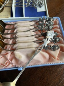 Ruusulusikat rasioissa 13 kpl, leimattua 813 ja 830-hopeaa Mitat: pit.12 cm paino yht.130g