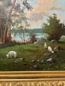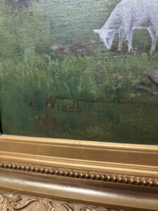 Taulu, Öljyvärimaalaus kankaalle, sign. LEONARD WIEDH 1898, (1866-1938) Ruotsi. ”Lampaat niityllä” Mitat: 60 x 82