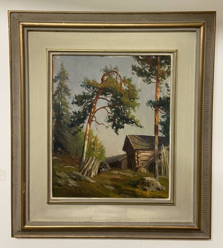 Öljyvärimaalaus, linnan sisäkuva, rokokoosali, sign. L.Vahtera Mitat: 66 x 56