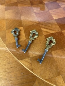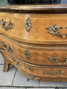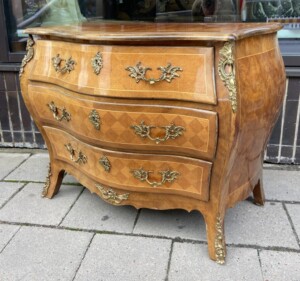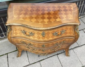 Mahalipasto mahonkia 1900-luku, intarsiaupotuksia, messinkilyötteet, avaimet löytyy laatikoihin 3 kpl Mitat: Myöh.