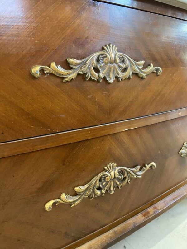 Laatikosto mahonkia kustavilaistyyli 1900-luku, kiva kapea malli, 5-vetolaatikkoa