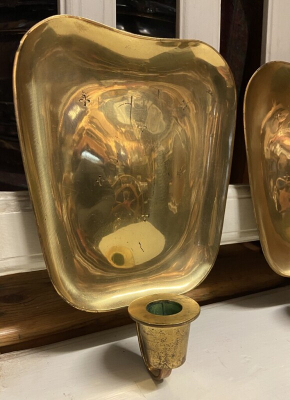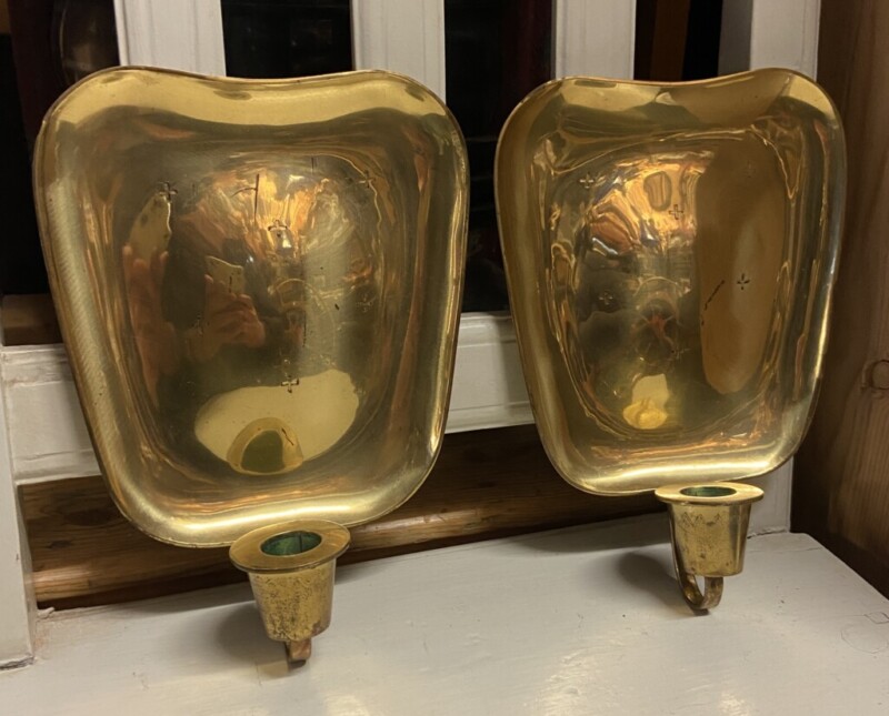 Seinälampettipari messinkiä 1950-luku, Veikko Huotari (1907-1964) VH- Lampetti Made In Finland Mitat: myöh.