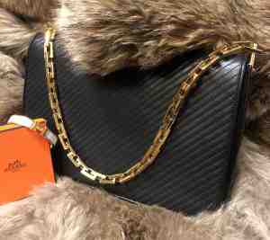 SAINT LAURENT Babylone 2, vm.2013, Chevronkuviotua vasikannahkaa, vuori mokkanahkaa. Dustbag. Mitat: 29,5 x 19,5 x 6