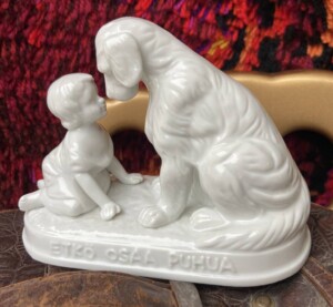 Koira ja poika, ”etkö osaa puhua”. Hellyyttävä vanha figuuri Mitat: K.12 L.17