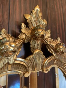 Kullattu peili ja konsolipöytä. Pöydän mitat: K.68 L.68 S.33
