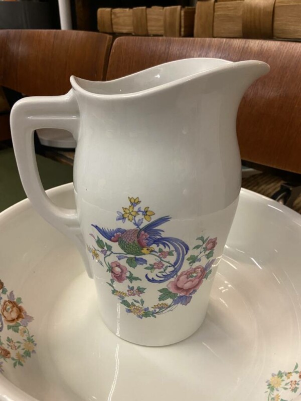 Pesusetti Arabia piippuleimoilla, 4-osaa, pesuvati, saippuakupit 2 kpl, potta.