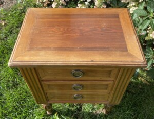 Talonpoikainen kustavilaistyylinen pieni lipasto, pronssihelat, 1800/1900-luku Mitat: myöh.