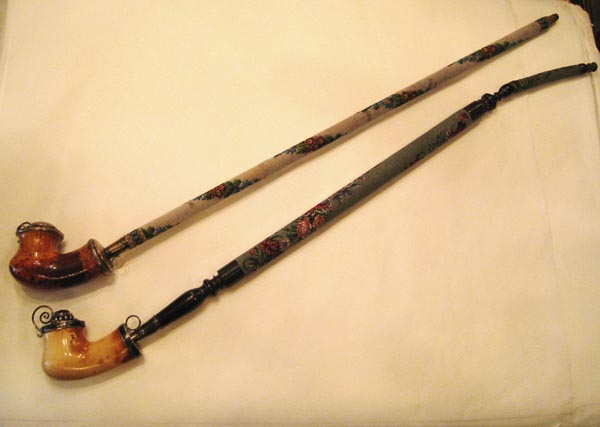 Upea helmiäiskirjailtu varsi, hopeahelainen merenvahapiippu, tekijä Henrik Willgren 1848 – 1856, Naantali