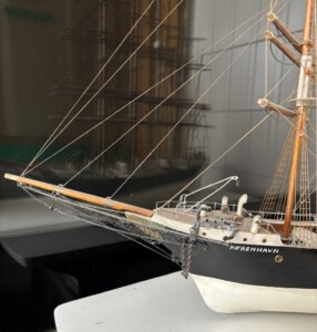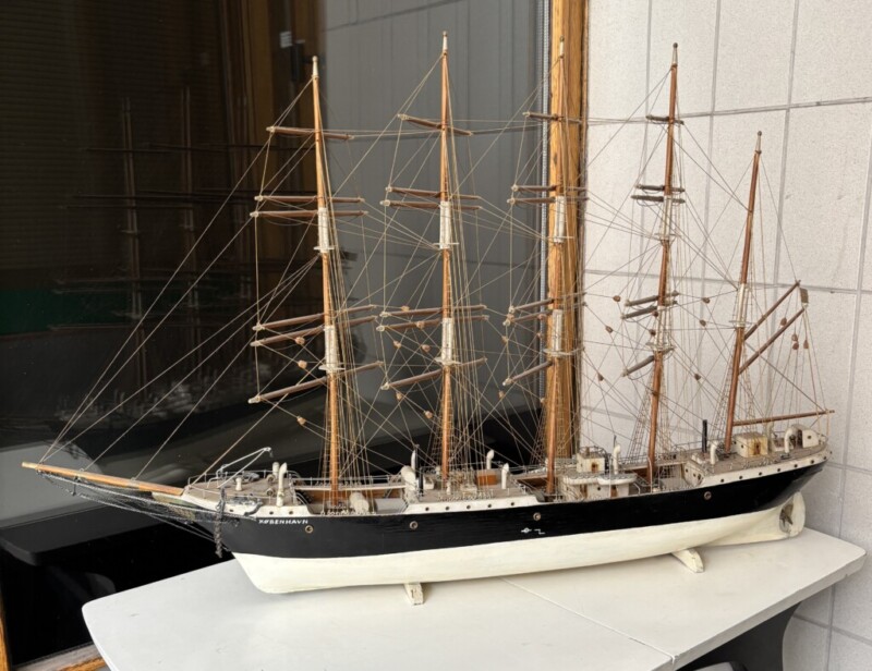 Purjelaiva Kobenhaven pienoismalli, 1900-luku, taidokkaasti ja tarkasti tehty Mitat: myöh.