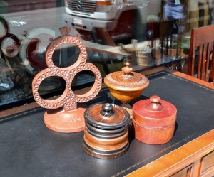 Vanha koristeellinen lankarullateline, vuosiluku 1848, vasemmalla