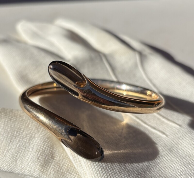 Kultainen naisten vintage rannerengas, leimattua kotimaista 585-kultaa.