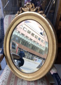 Peili soikea, kullattu kehys, fasetti hiouttu peili, 1900-luku Mitat: myöh.