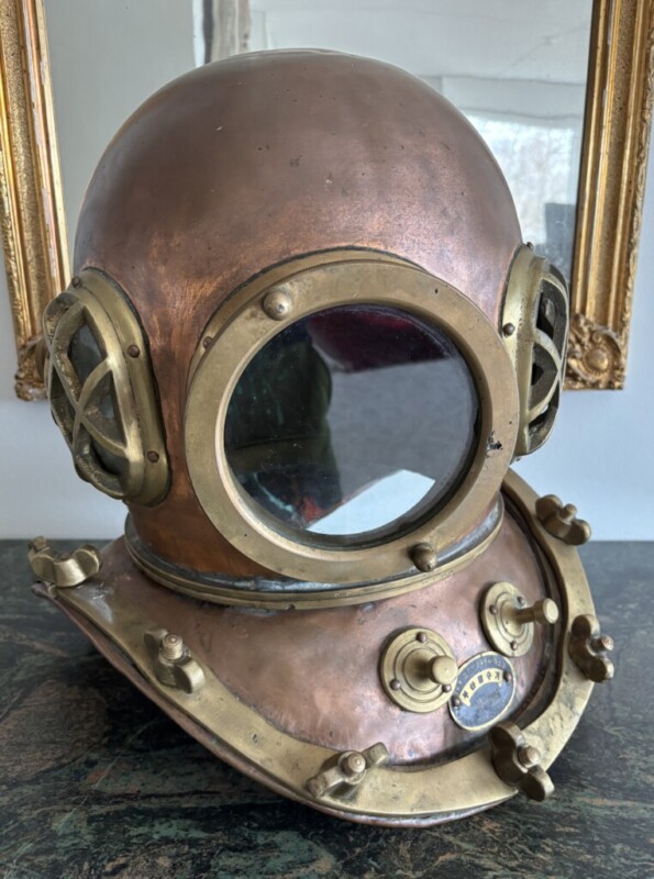Sukelluskypärä kuparia ja messinkiä, 1900-luku Mitat: Myöh.