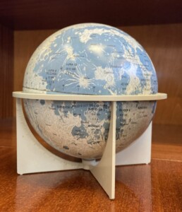 Tähdistö, kuu, galaksi, aurinkokunta, maa, vanhat peltiset 1960-luvun opetuspallot Mitat: K.17