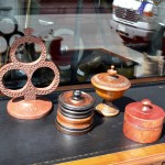 Puinen talonpoikais-esine, vuosiluvut 1764 & 1886, juustokehän edessä