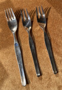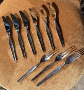 Tapio Wirkkala, Kultakeskus Oy veitset 6 kpl ja haarukat 3 kpl, kotimaista 830-leimattua hopeaa.