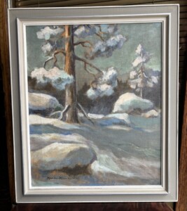 Öljyvärimaalaus kankaalle, talvinen maisema, sign. aarne Alanko -29 Mitat: 68 x 58