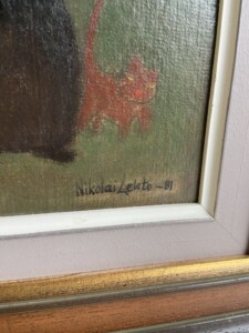 Nikolai Lehto, naivistinen taulu, ”perhe”, signeerattu -81 Mitat: 47 x 40