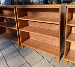 Kirjahyllyt 3 kpl teak, 1950-luku, säädettävät irtohyllyt Mitat: K.100 L.95,5 S.31
