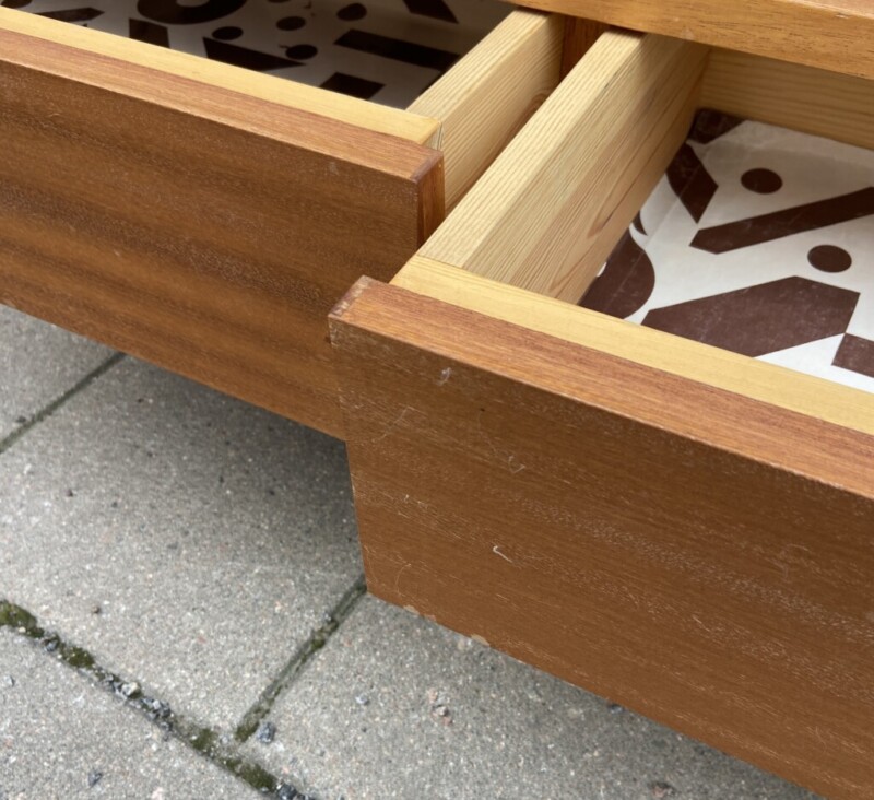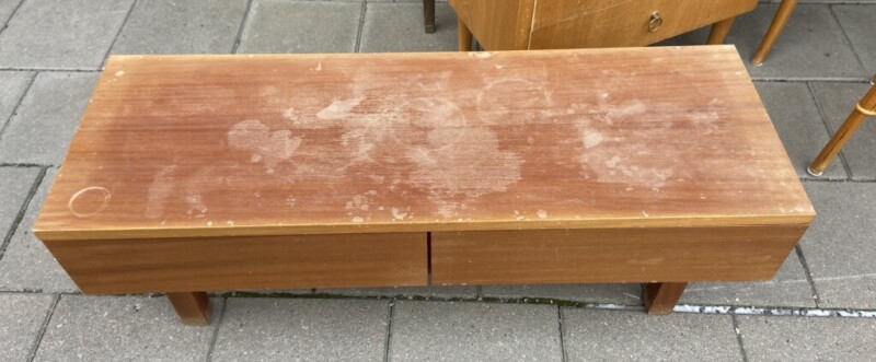Taso laatikoilla tiikkiä 1960-luku Mitat: K.40/58 L.111 S.39