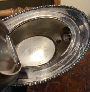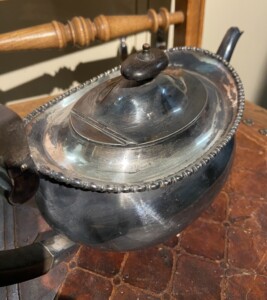 Teekannu metallia 1900-luku, puukahva Mitat: myöh.