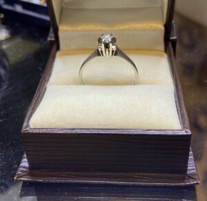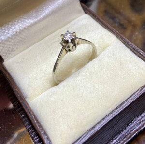 Sormus, leimattua kotimaista 750-valkokultaa, timantti 0,17ct, ei kaiverruksia Mitat: Myöh.