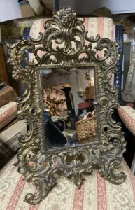 Messinkinen harvinaisen kaunis pöytäpeili, voi muuttaa valokuvakehykseksi, 1800/1900-luku Mitat: L.31 K.52
