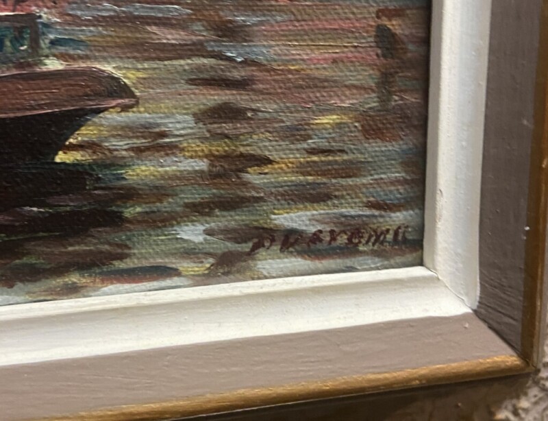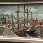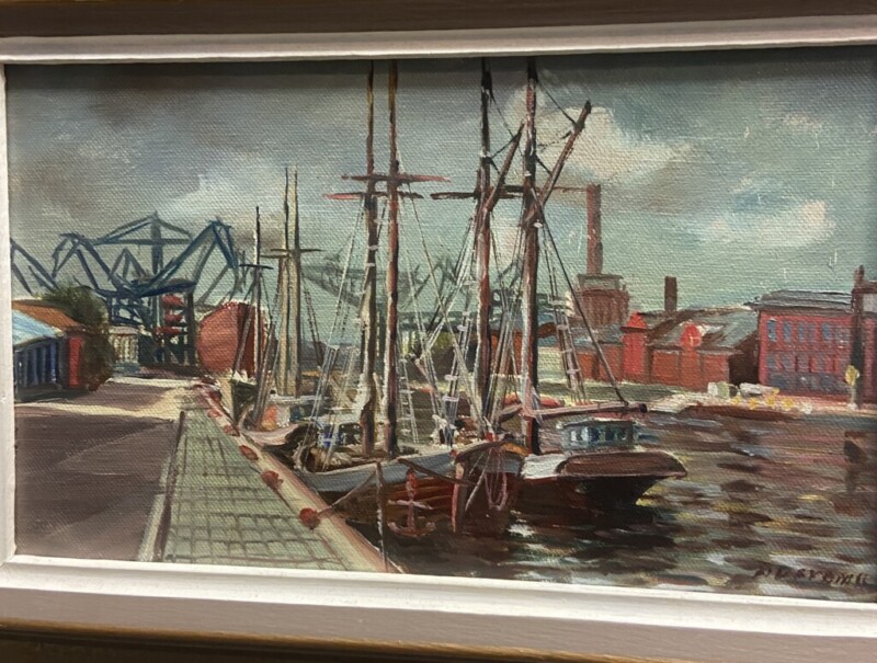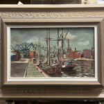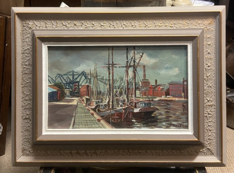 Turku Aurajoki, öljyvärimaalaus kankaalle, laivoja joella. Sign.H.Linsen Mitat: 53×77