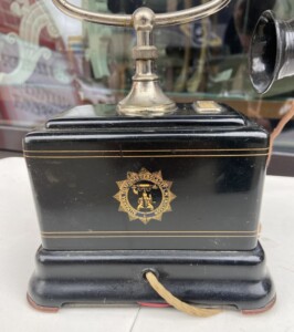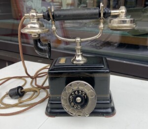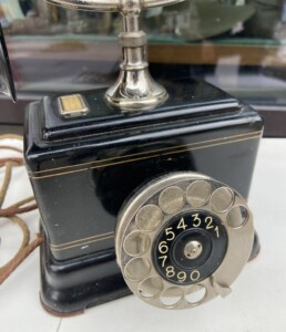 Pöytäpuhelin L.M. Ericsson, metallia, pakeliitti räkätorvi