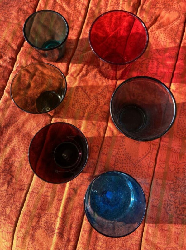 Juomalasit 5kpl 1950-luku (2 vaalea jäljellä) Mitat: K.13,5