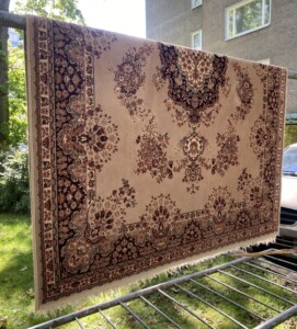 Belgialainen villamatto, tahriintunut. Mitat: 170 x 240