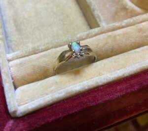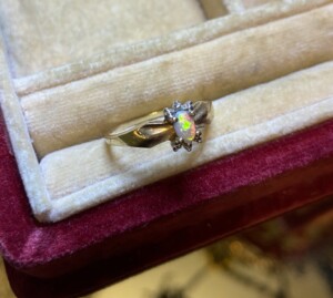 Sormus leimattua kotimaista 585-kultaa, kivi vaihtaa upeasti väriä käännellessä Mitat: Myöh.