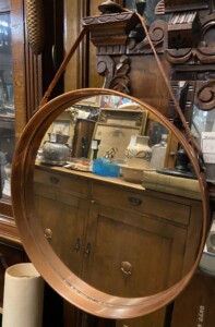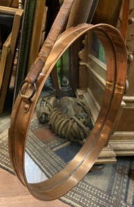 Kuparikehyksinen peili, nahkainen ripustin, 1960-luku Mitat: Halk.39