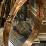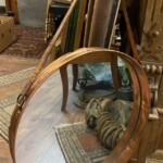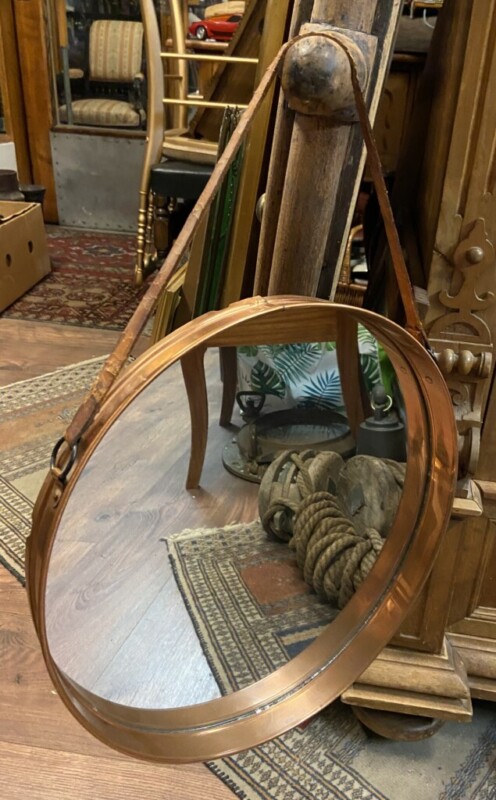 Kuparikehyksinen peili, nahkainen ripustin, 1960-luku Mitat: Halk.39