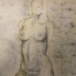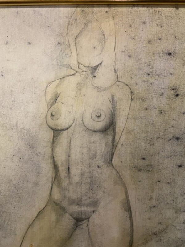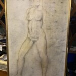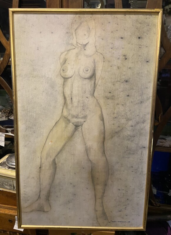Sekatekniikkaa levylle, ”alaston”, signeerattu Tapio Kinnunen 1969. Mitat: Myöh.