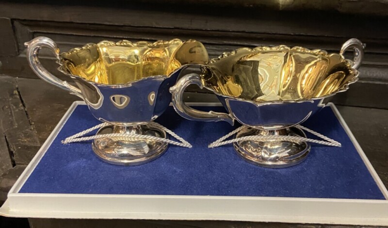 Sokerikko ja kermakko leimattua kotimaista 830-hopeaa, ei kaiverruksia, alkuperäinen pakkaus Mitat: Myöh.