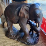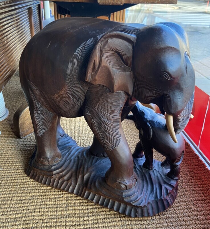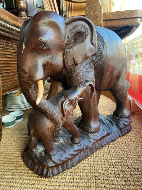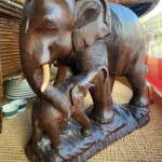 Puinen norsu ja poikanen, käsinveistetty Mitat: myöh.