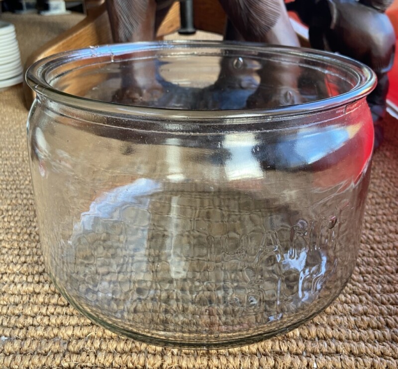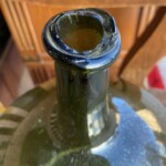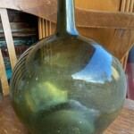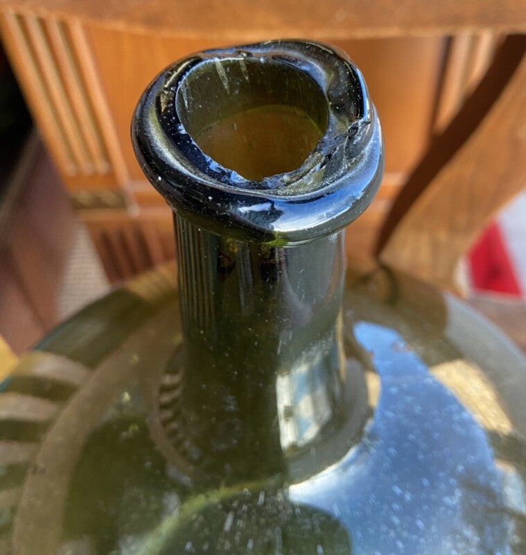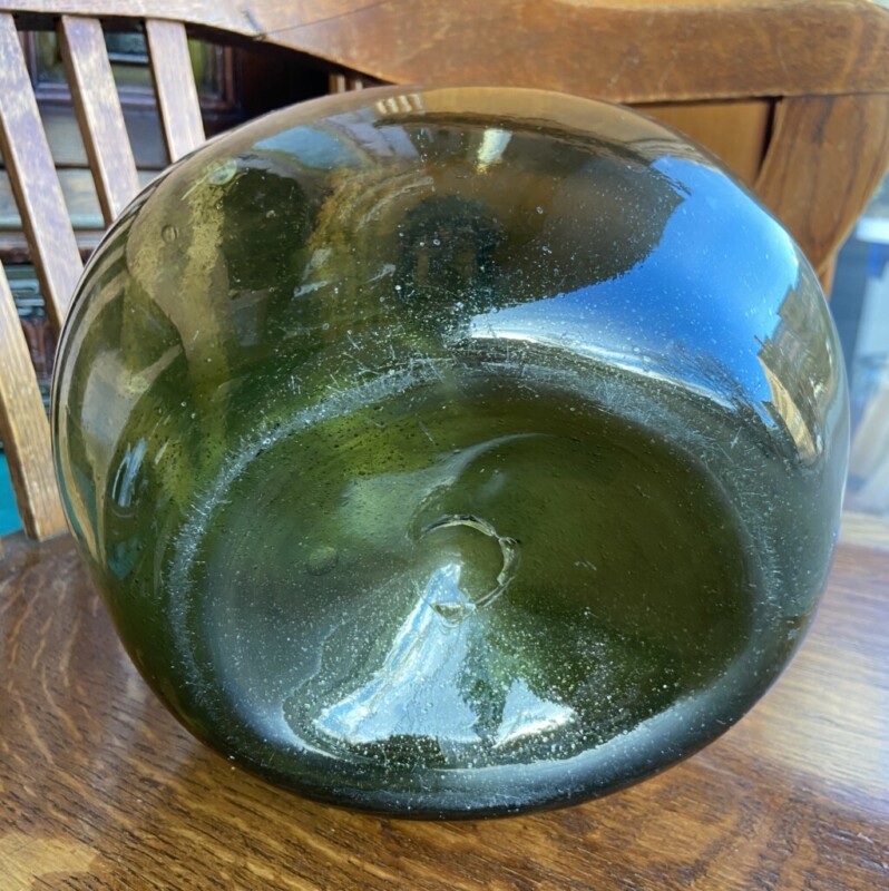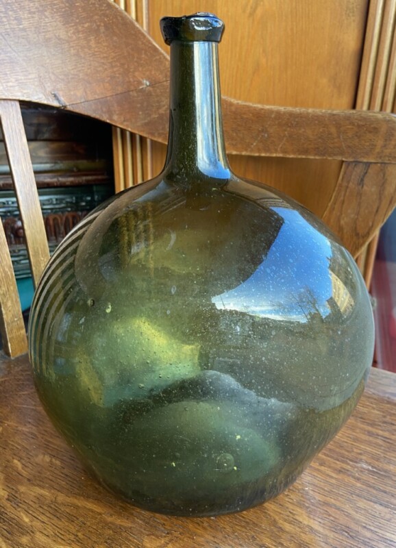 Mahapullo 1800-luku, käsinpuhallettua ohutta vihreää lasia, hienokuntoinen Mitat: myöh.