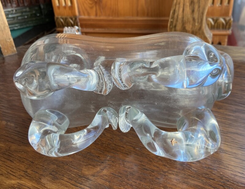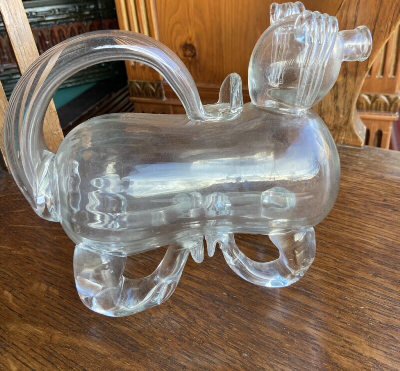 "Viinakoira", puhallettua lasia, 1800-luku Mitat: myöh.