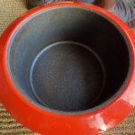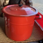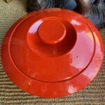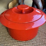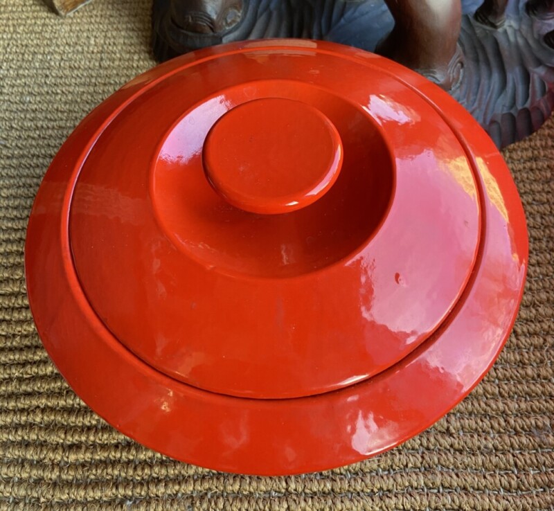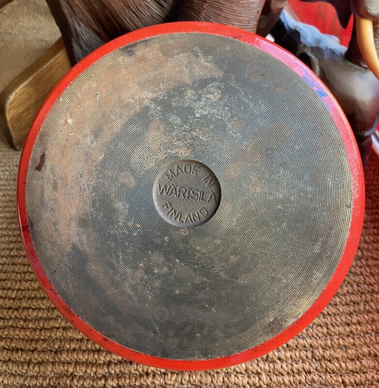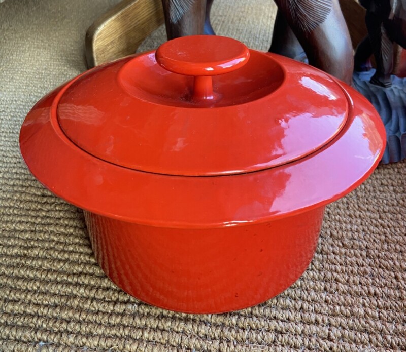 Antti Nurmesniemi, Wärtsilä valurautapata lentävä lautanen pata, 1977-1984, erittäin hienokuntoinen punainen emalointi pinta Mitat: myöh.