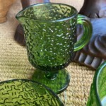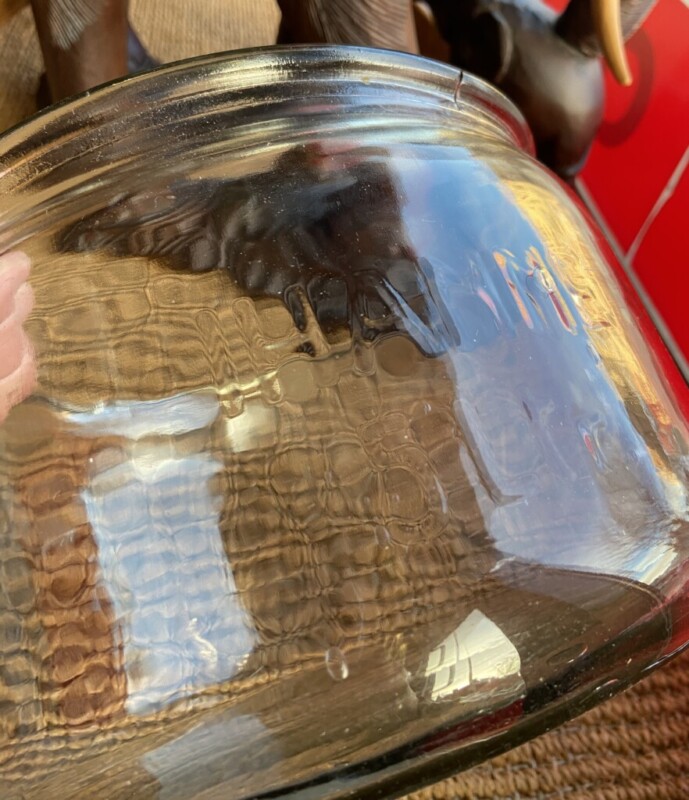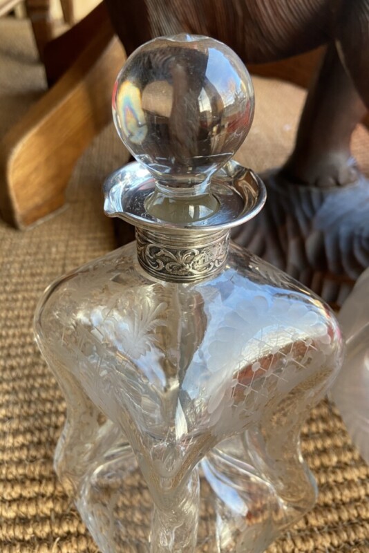 Kulho lasia 1800/1900-luku Mitat: K.11,5 Halk.27,5 Myyntihinta: 32,00 € Karahvi vihreää lasia 1900-luku, punttelipohja Mitat: K.22 Myyntihinta: 48,00 €